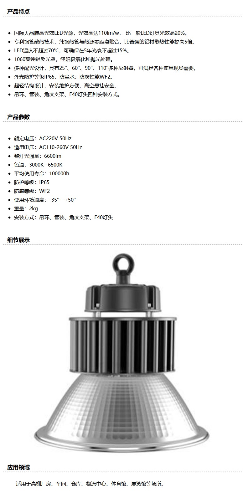 商品名称:中跃 LED高顶灯,ZY9172-60W,60°反射器,支架安装,单位:个