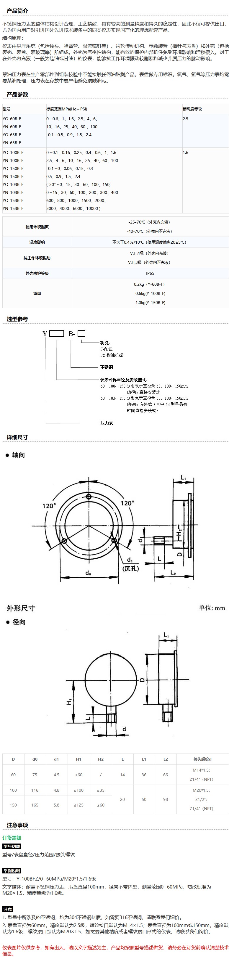 商品名称:上仪 禁油压力表,YO-153 -0.1-1.5MPa M20*1.5 轴向前带边 碳钢+铜
