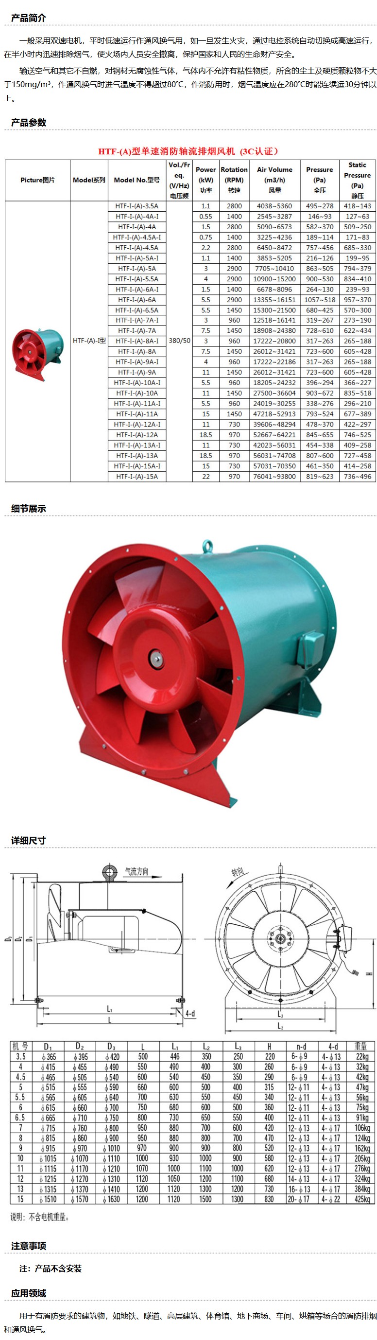 商品名称:九洲普惠 HTF-(A)型单速消防轴流排烟风机,HTF-I-(A)-9A,380V,11KW