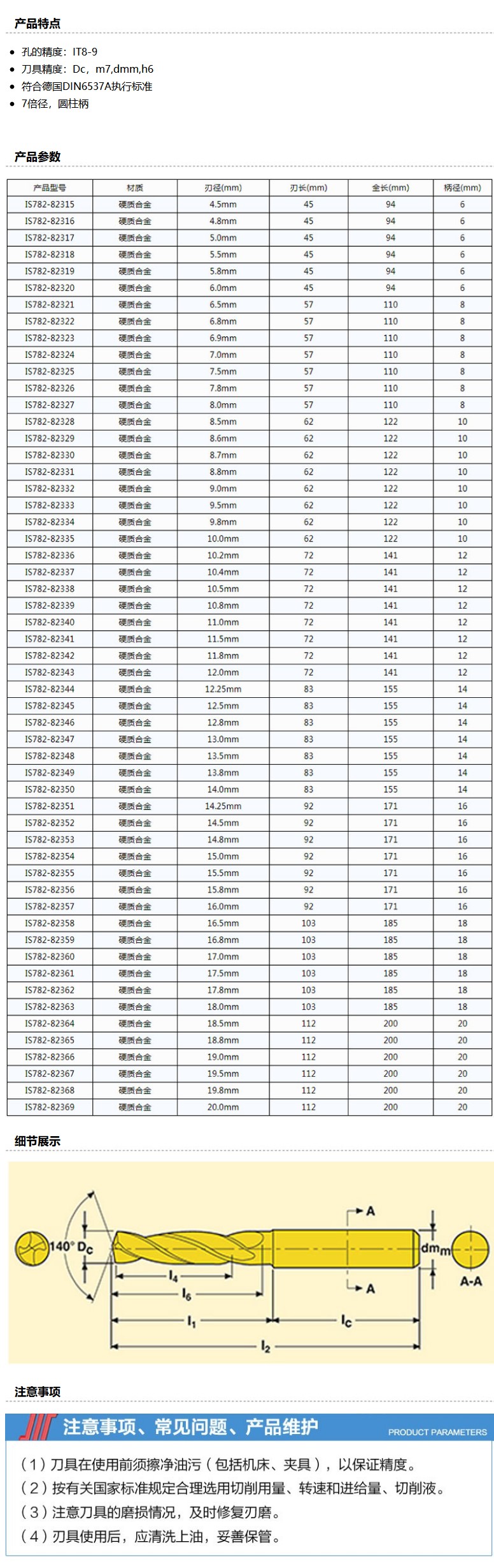 商品名称:INVOUS 7倍径硬质合金外冷却通用钻头,11.8mm,IS782-82342