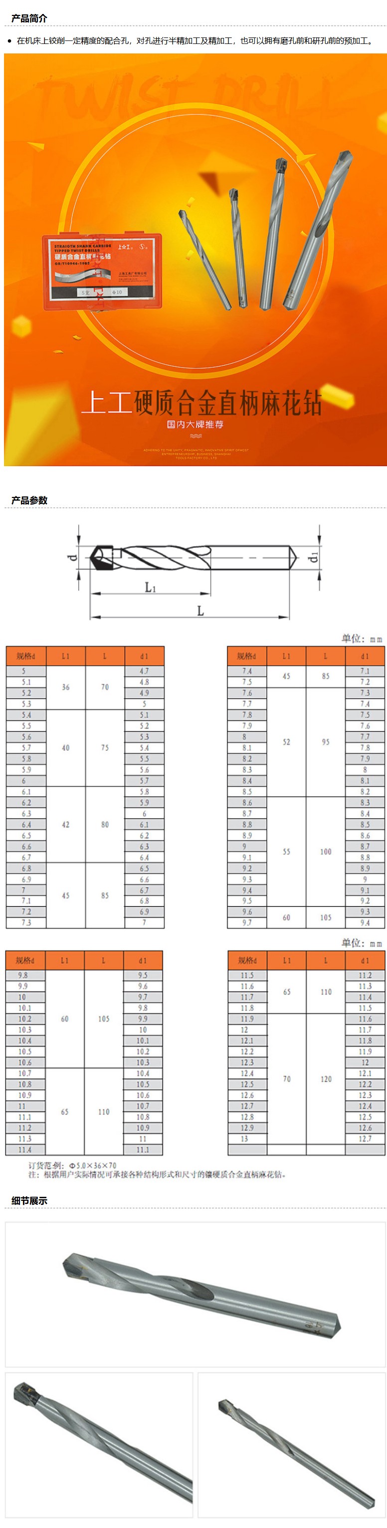 商品名称:上工 直柄麻花钻,D10.2(镶合金),5支/包