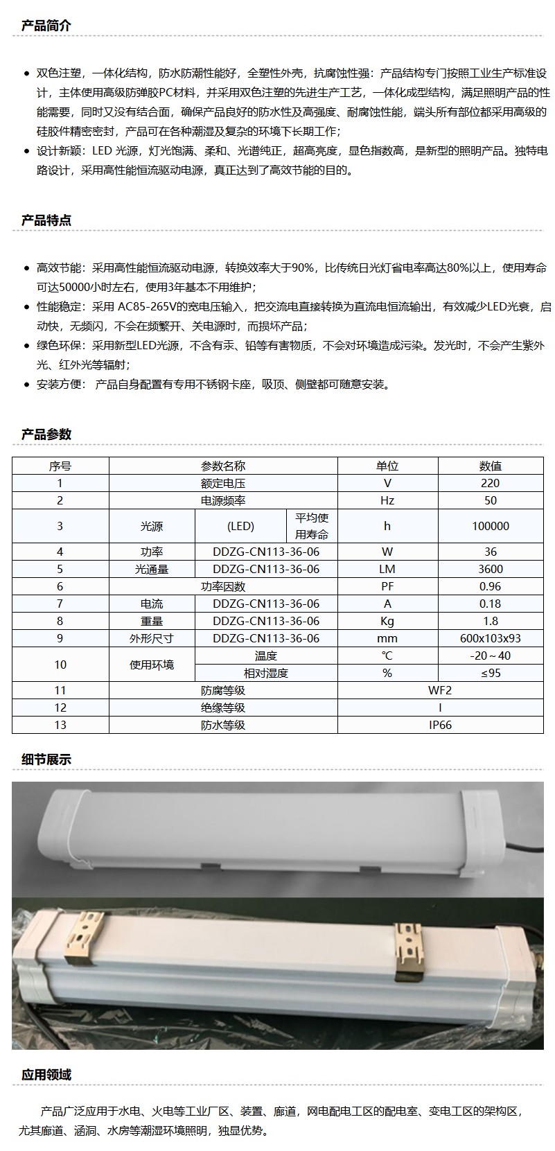 商品名称:大地之光 DDZG-CN113-36-06 LED整体式工业三防灯 36W 6000K 白光