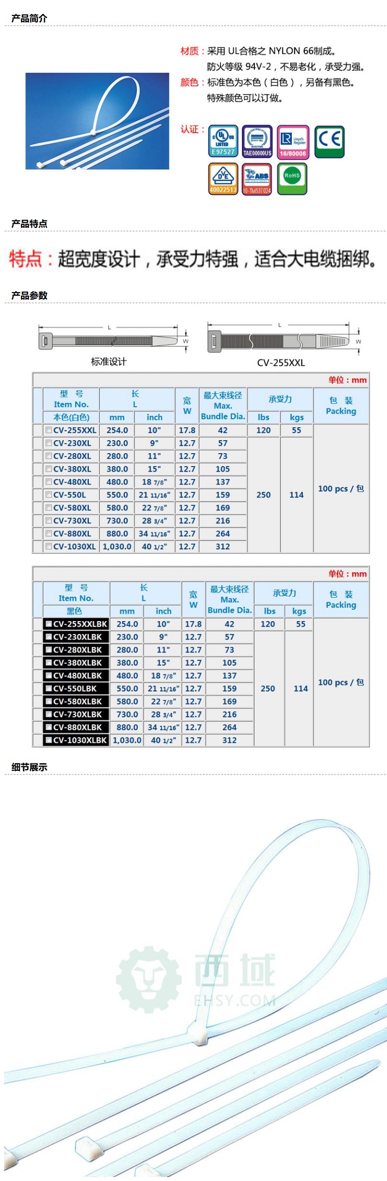 商品名称:凯士士KSS 超宽型尼龙扎线带,CV-280XL