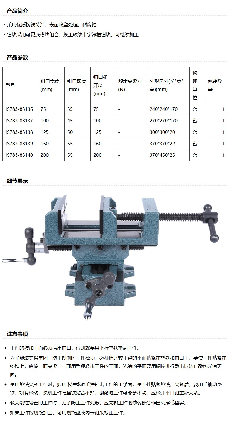 商品名称:INVOUS 精密十字平口钳,75mm,IS783-83136