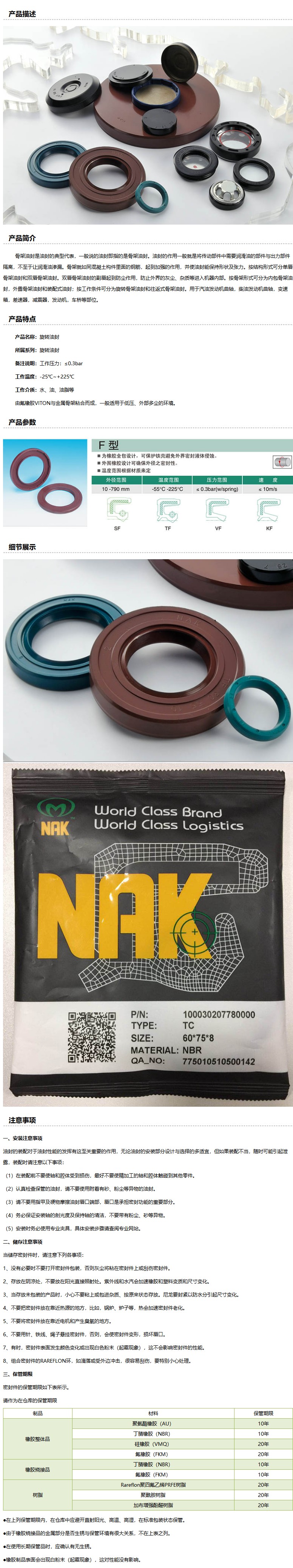 商品名称:NAK/茂顺 耐高温耐腐蚀氟橡胶单唇内骨架油封,弹簧材质不锈钢,SF 36*54*7.5 FKM,1个/包