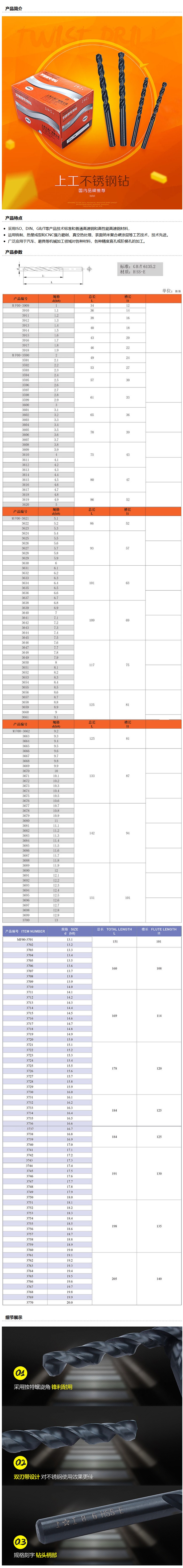 商品名称:上工 麻花钻,(直柄) 不锈钢专用,Φ15.3mm