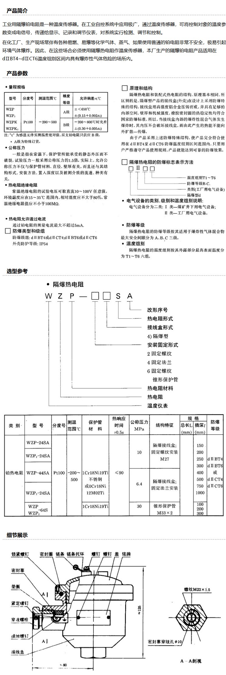 商品名称:上仪 隔爆铂电阻,WZPK-44(dⅡBT4) 单支 304 250×100mm DN50法兰