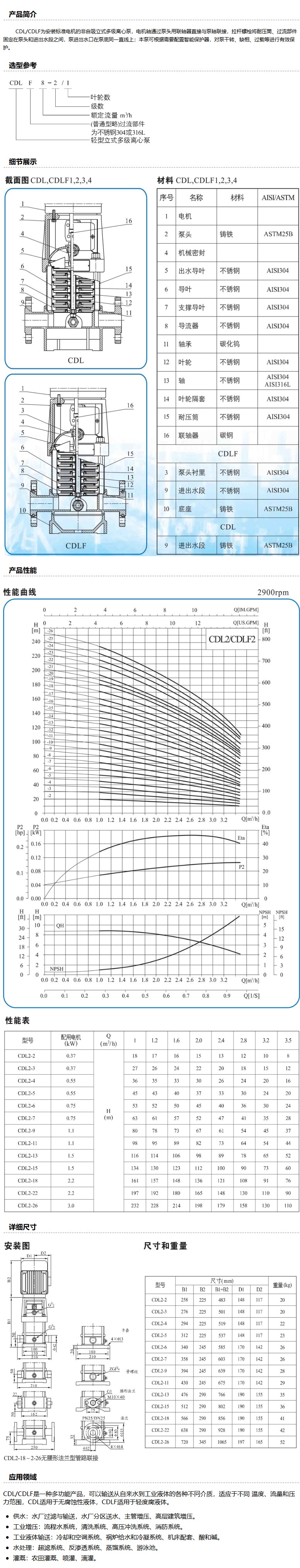 商品名称:南方泵业/CNP CDL2-13-FSWPC CDL系列不锈钢304立式多级离心泵(普通型),法兰连接,常温型
