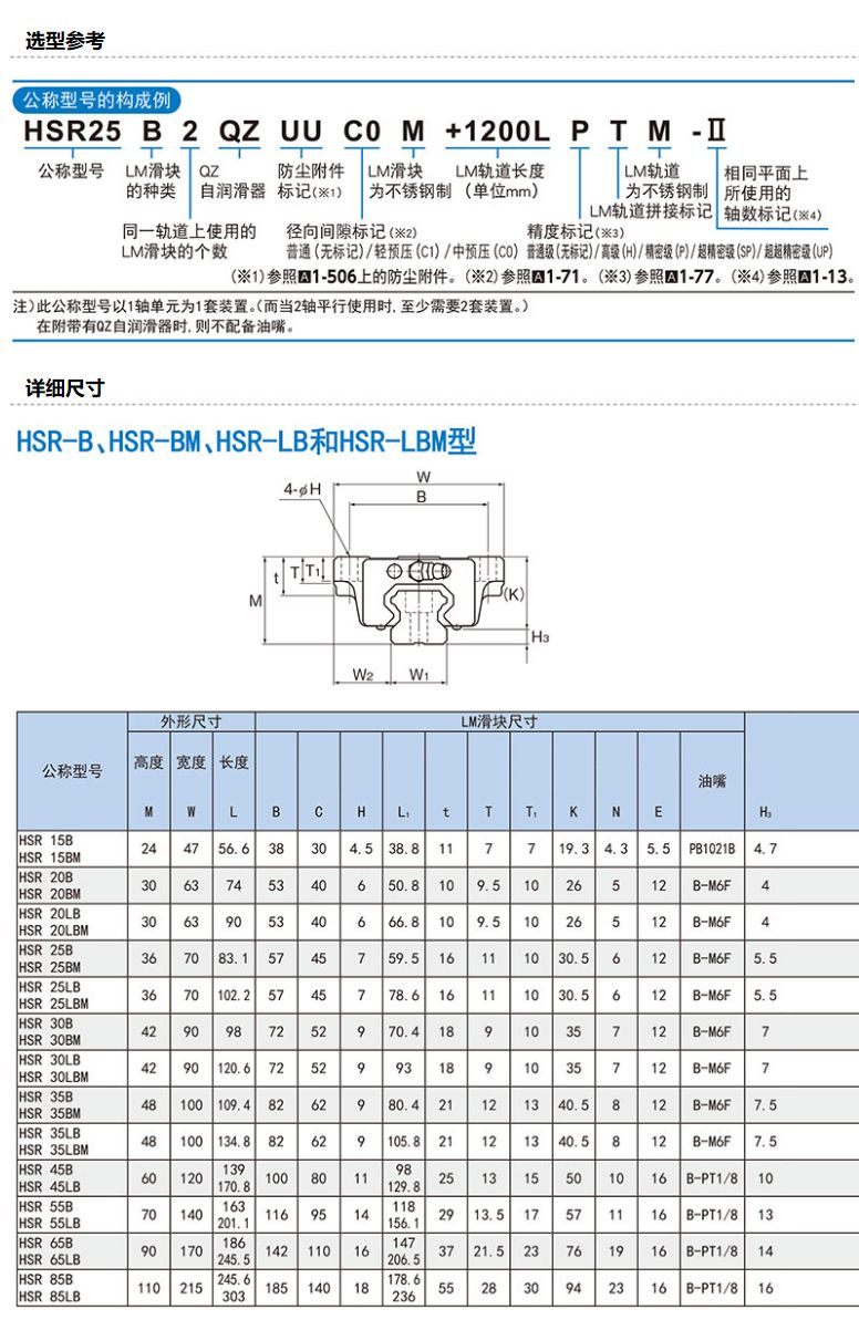 商品名称:THK LM导轨,HSR30B2SS+1000L(G1=G2=20,CCAP)
