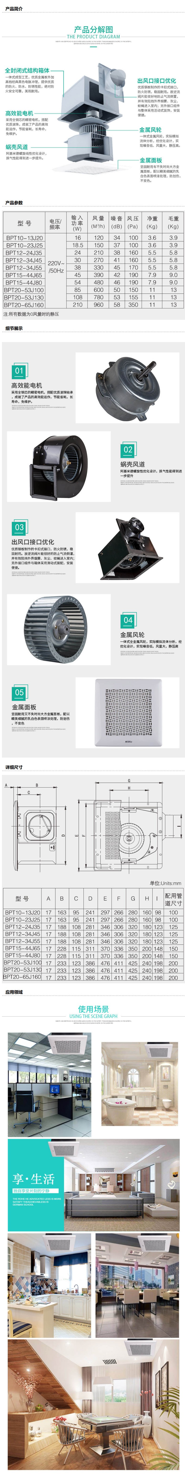 商品名称:绿岛风 全金属管道式换气扇,BPT12-34J55,220V/50Hz,38W
