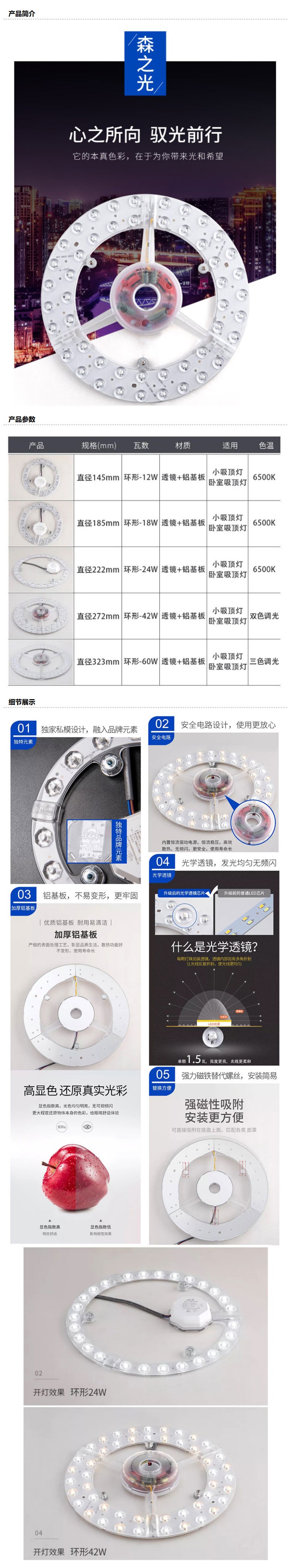 商品名称:木林森 森之光系列环形灯贴,LED光源模组,24W,φ222mm,6500K,单位:个