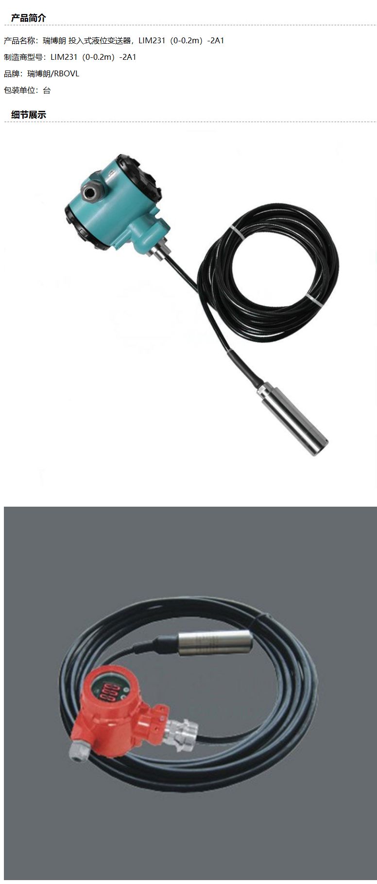 商品名称:瑞博朗 投入式液位变送器,LIM231(0-0.2m)-2A1