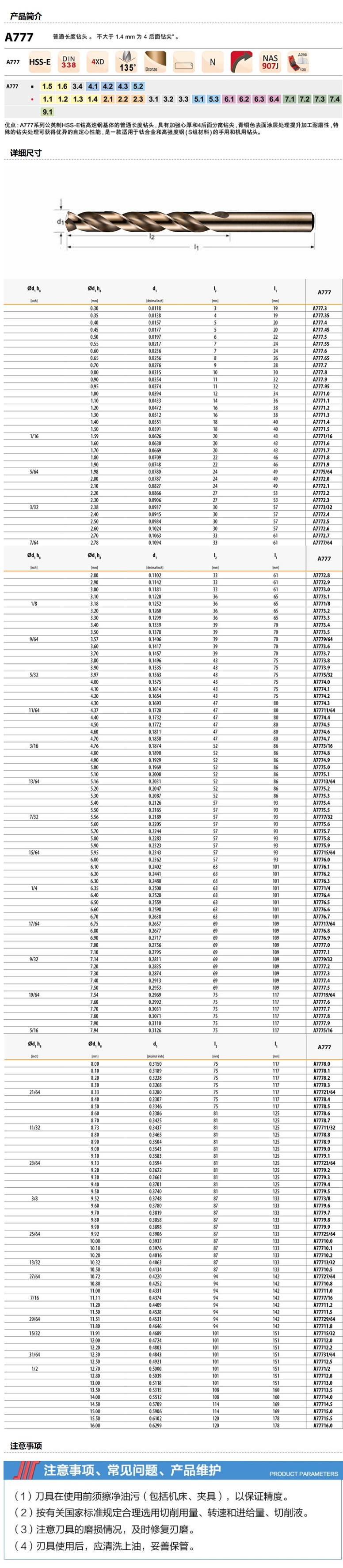 商品名称:多马DORMER 直柄麻花钻,HSS-E、φ8,A777系列,10支/包