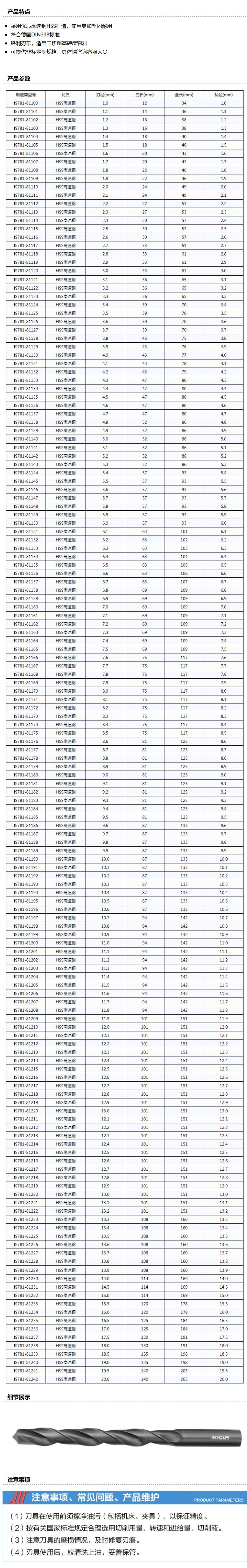 商品名称:INVOUS 高速钢麻花钻,7.1mm,IS781-81161,10支/盒
