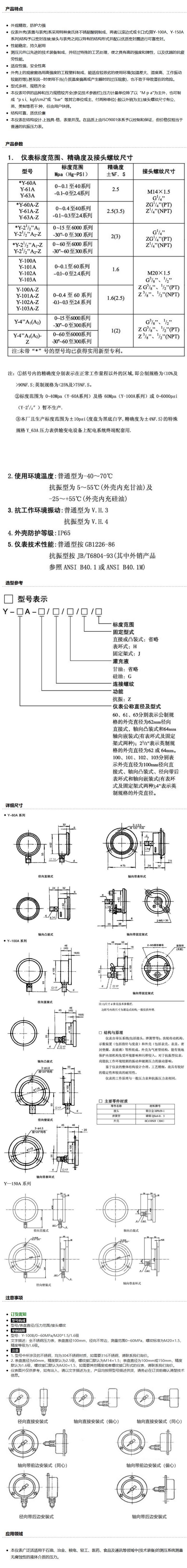 商品名称:上自仪 不锈钢压力表,Y-153A/0-40MPa/M20×1.5/1.6级/表壳304+接液铜/轴向带边