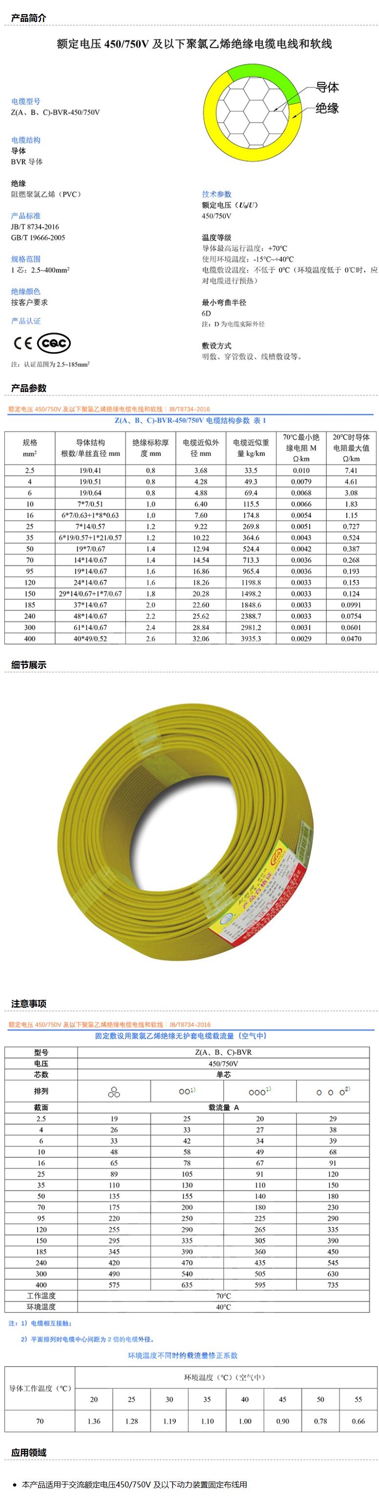 商品名称:起帆QIFAN 阻燃C级铜芯聚氯乙烯绝缘软线,ZC-BVR-240 黄色,100米/卷