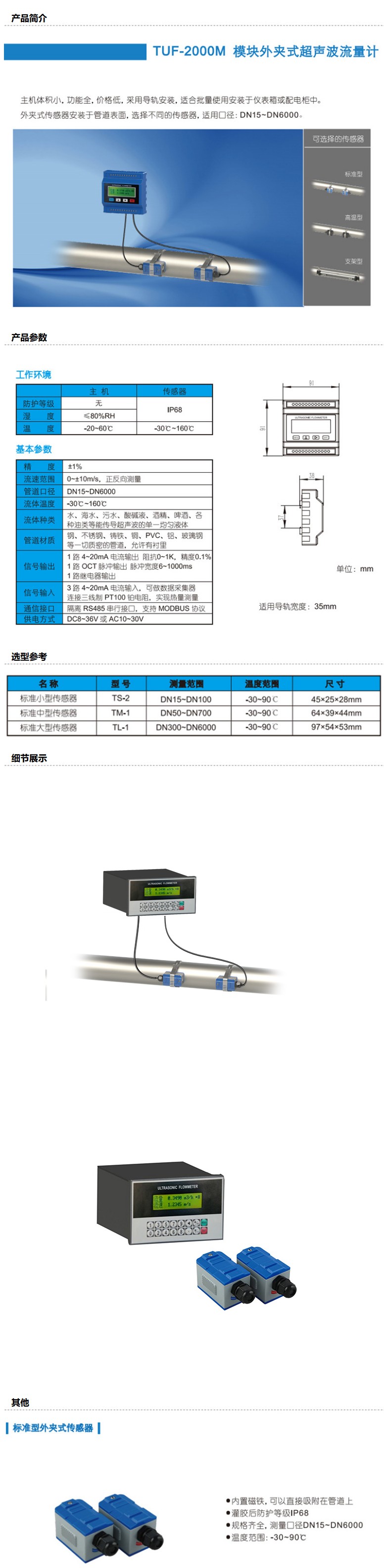 商品名称:道盛 盘装外夹式超声波流量计,TUF-2000U-TL-1(DN600) 标准大型探头 -40~90℃ 10m线