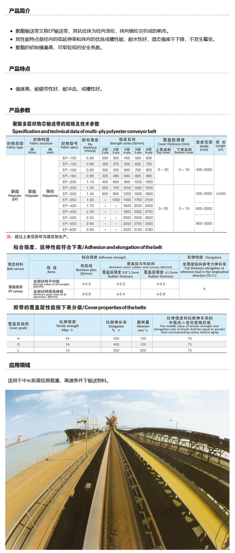 商品名称:双箭 聚酯输送带,EP300 1000*5(6+3),阻燃
