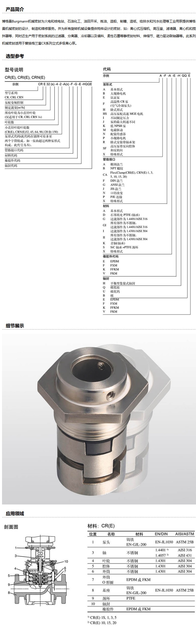 商品名称:嘉善博密机械密封,适用泵型号格兰富/Grundfos CRN5-16 A-FGJ-G-V-HQQV