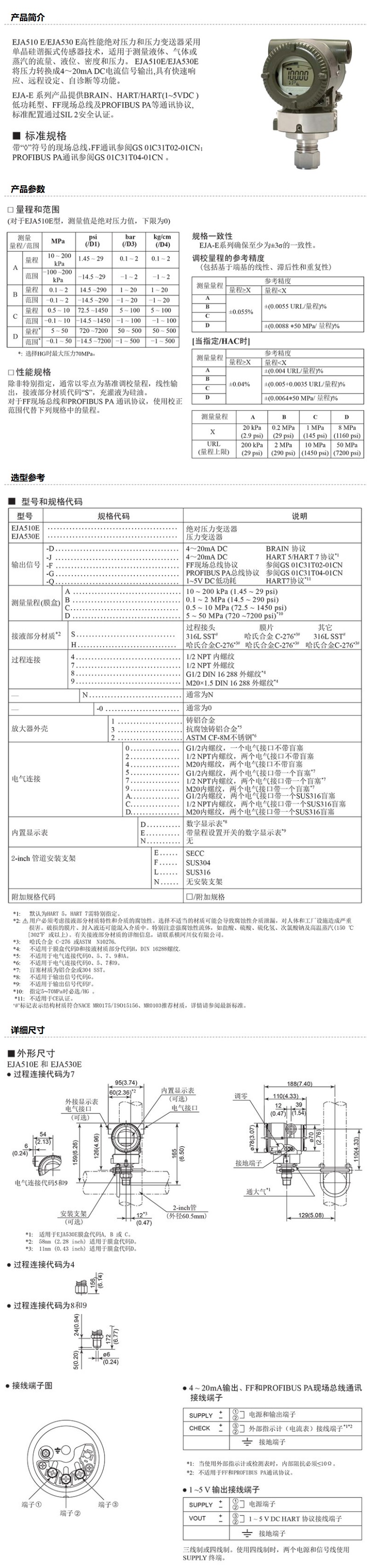 商品名称:川仪 电动压力变送器,EJA510E-JDS7N-017EL/NS21 0-1200psi