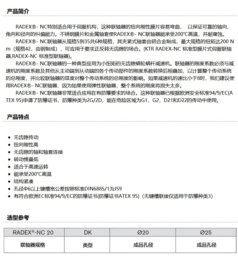 商品名称:开天KTR RADEX NC 膜片伺服联轴器,RADEX-NC35-DK-Φ22-Φ22