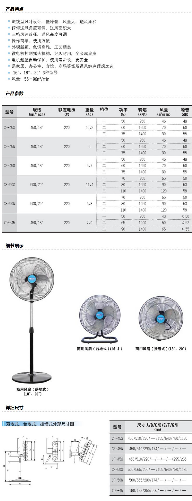 商品名称:德通 商用挂墙式风扇,CF-45W