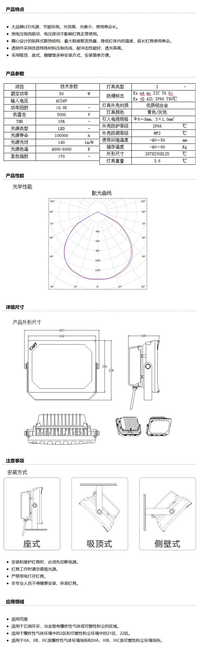 商品名称:凯瑞 LED防爆泛光灯,低压AC24V 50W,KLE5020-50W (AC24V),白光,单位:个