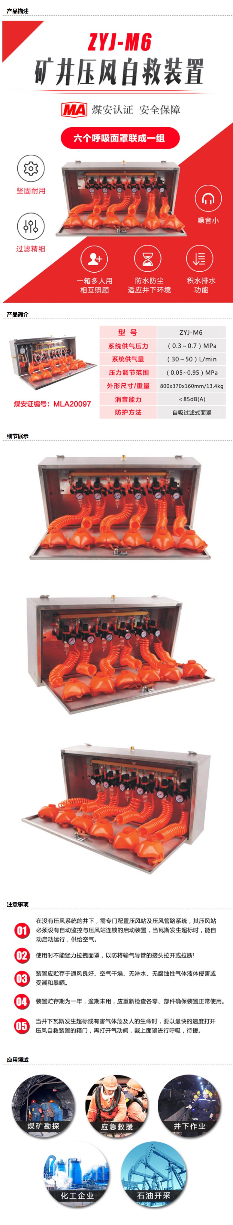 商品名称:斯达ASTTAR 矿井压风自救装置,ZYJ-M6,煤安证号MLC110001,单位:个