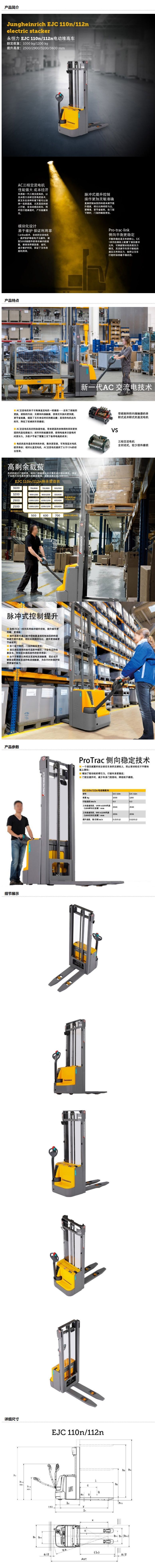 商品名称:永恒力 EJC 110n 电动堆高车托盘堆垛车,载重1.0t,提升高度3.6米 三相交流电机 脉冲式提升