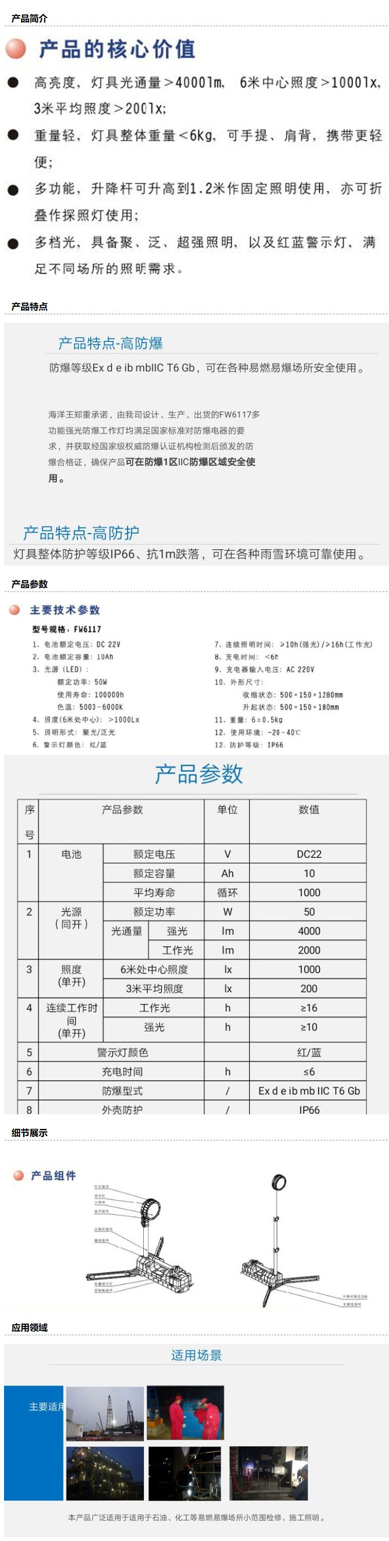 商品名称:深圳海洋王 防爆轻便移动灯 OK-6117 单位:套