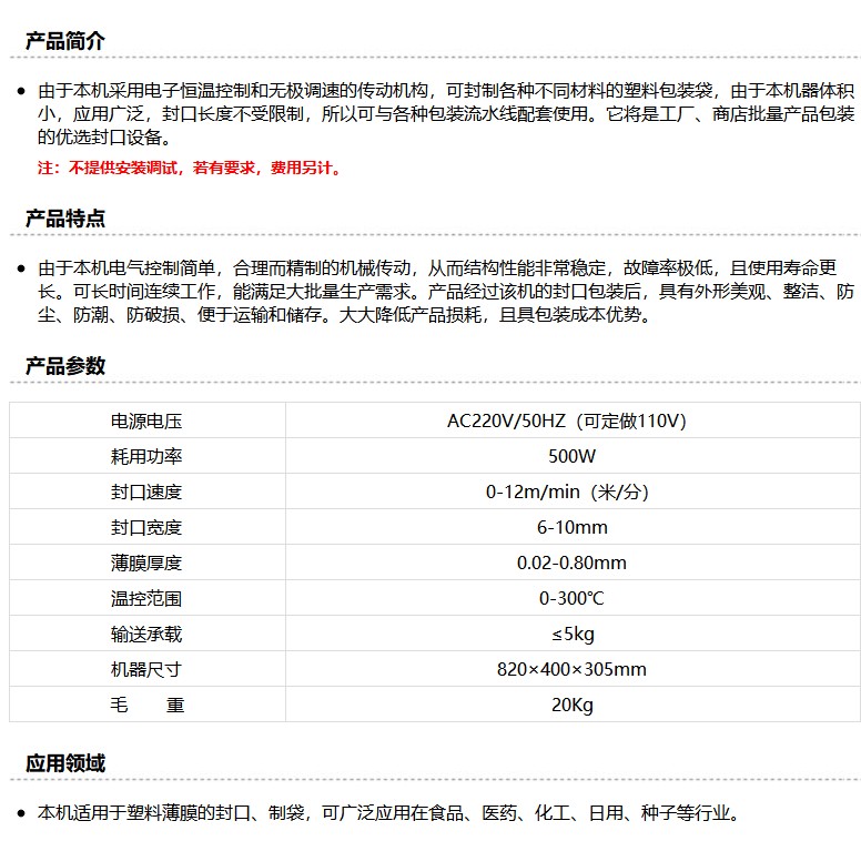 商品名称:三圈牌 连续封口机,封口长度 不限