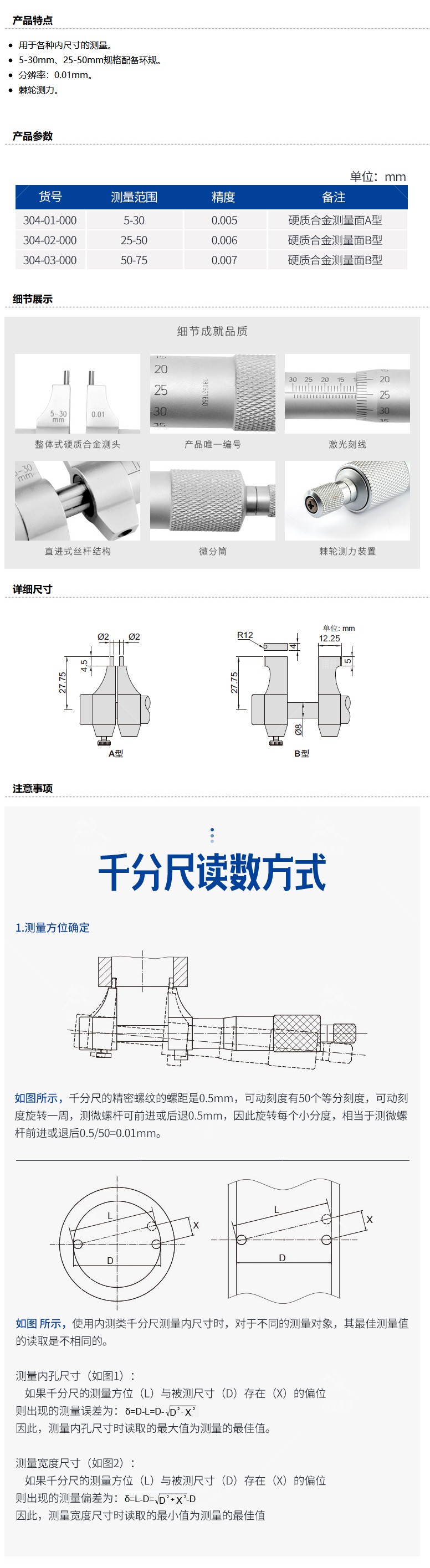 商品名称:青量 内测千分尺 5-30mm,304-01-000
