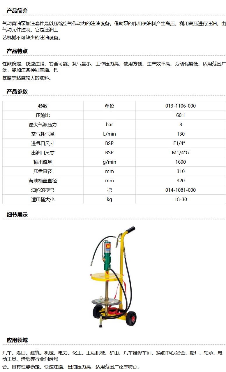 商品名称:迈陆博/meclube 013-1106-000 60:1气动黄油泵组套