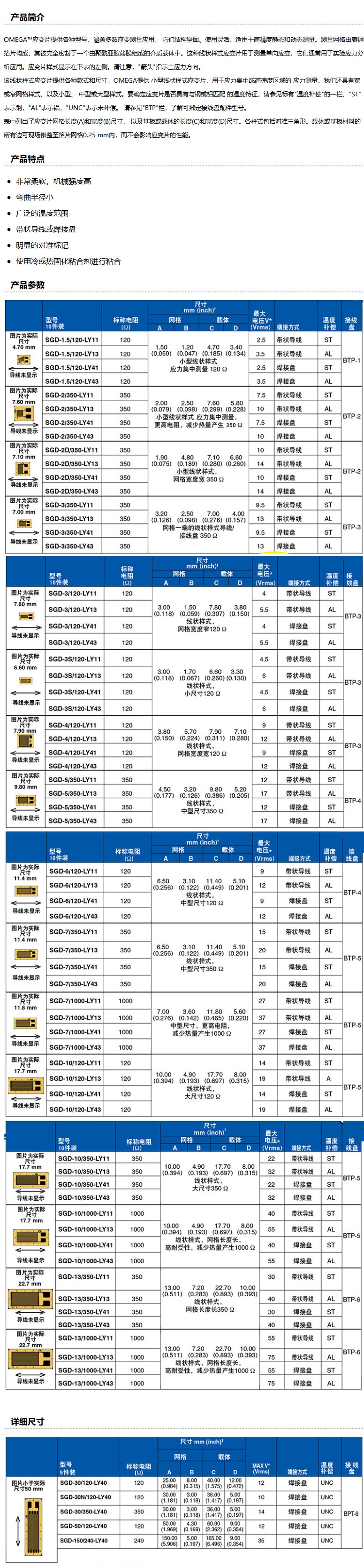 商品名称:OMEGA 精密应变片,SGD-13/350-LY11 13mm网格 350Ω 封装带状导线匹配钢 10片/包