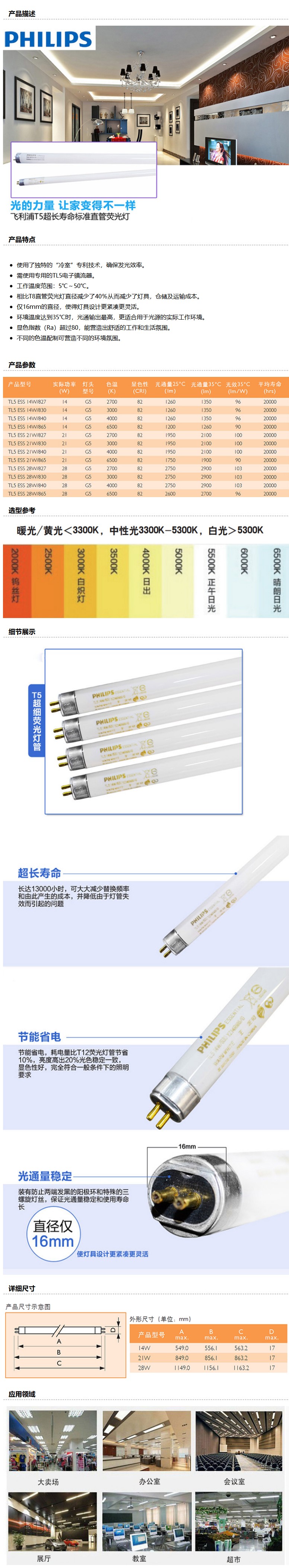 商品名称:飞利浦 14W T5超细直管荧光灯,0.6米,黄光 色温3000K,TL5 ESS 14W/830,单位:根