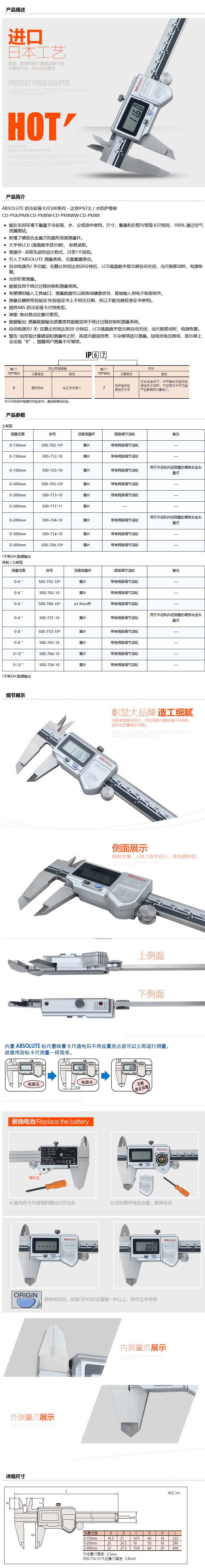 商品名称:三丰 mitutoyo 防水数显卡尺,防护等级IP67 0-200mm 带SPC输出功能,500-713-20,不含第三方检测