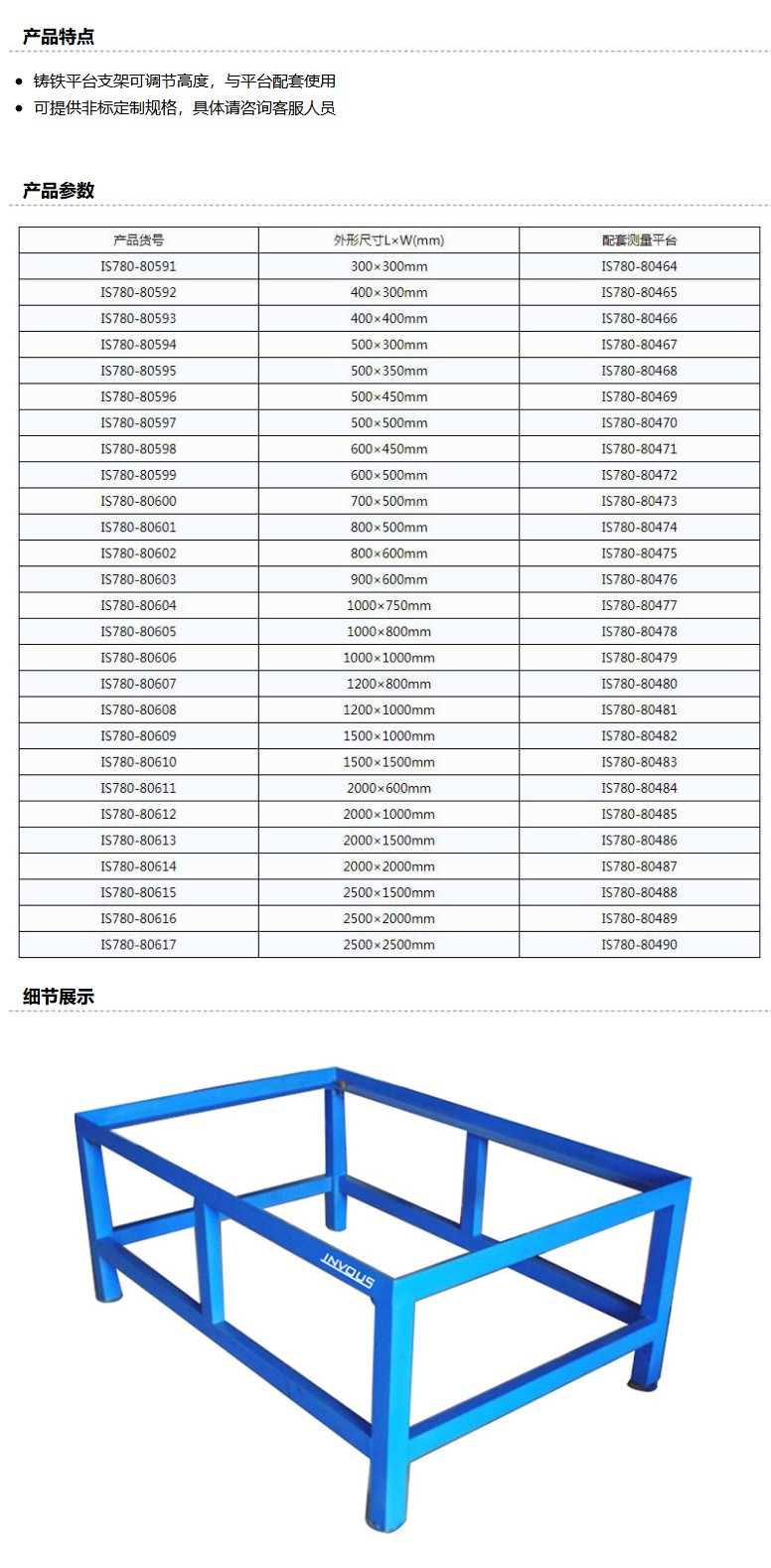 商品名称:INVOUS 铸铁检测平台支架,500×300mm,IS780-80594