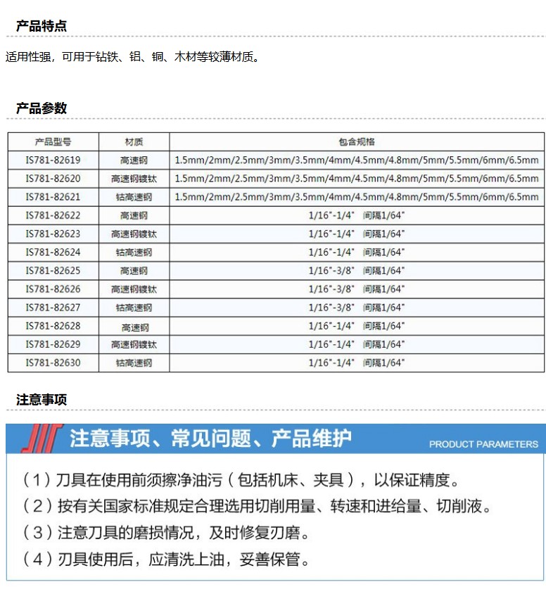 商品名称:INVOUS 21件套高速钢英制全磨制钻头组套,1/16"-3,8",IS781-82625