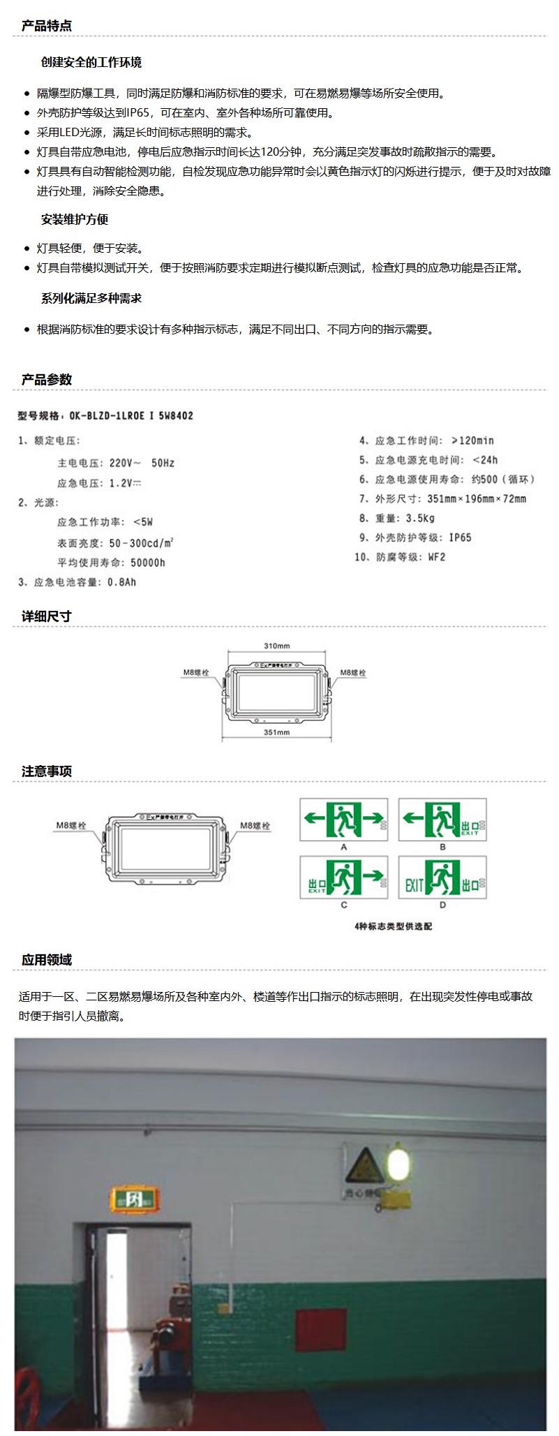 商品名称:深圳海洋王 防爆消防应急标志灯具 ,OK-BLZD-1LROE I 5W8402 C ,单位:个