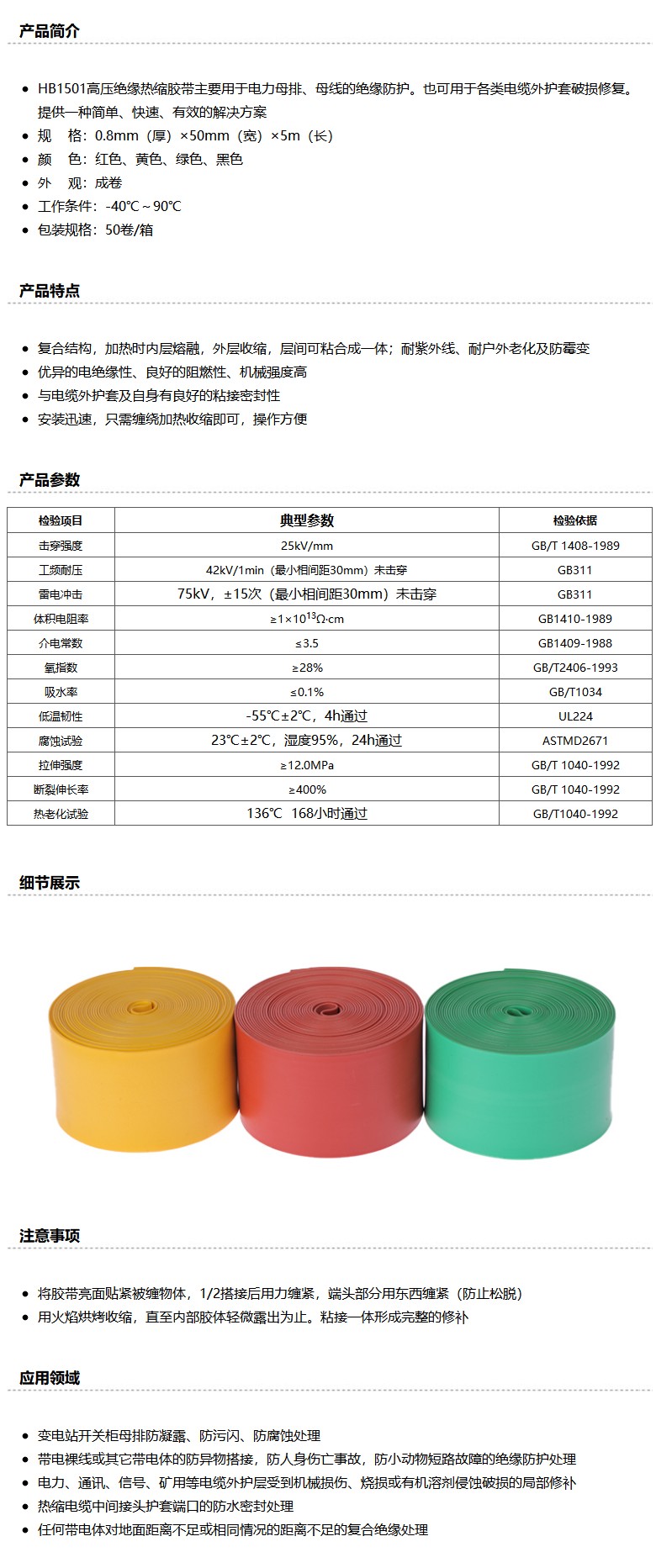 商品名称:中科应化 高压绝缘热缩胶带,HB1501 红色 0.8mm×50mm×5m
