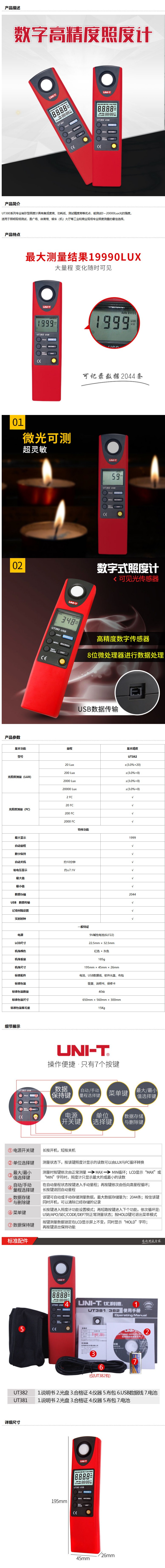 商品名称:优利德/UNI-T 数字式照度计,UT382