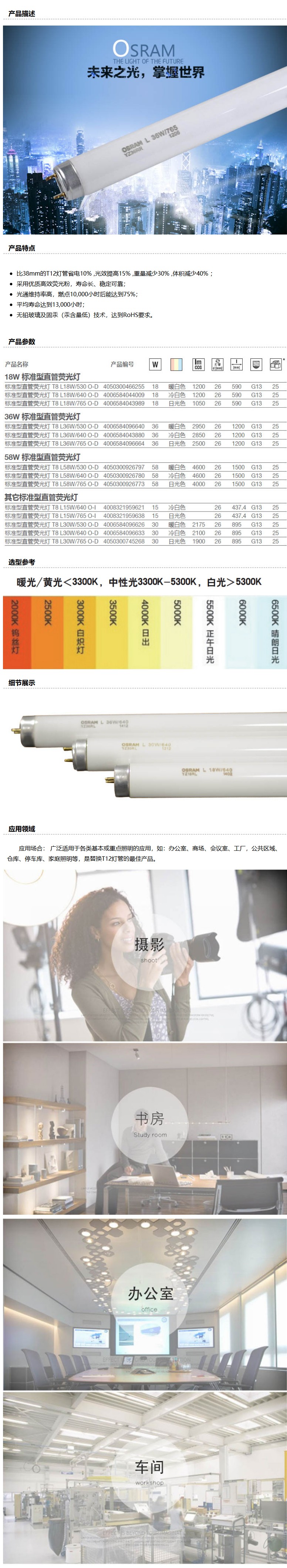 商品名称:欧司朗 标准型直管荧光灯管,0.9米 中性光 色温4000K,T8 30W/640,单位:个
