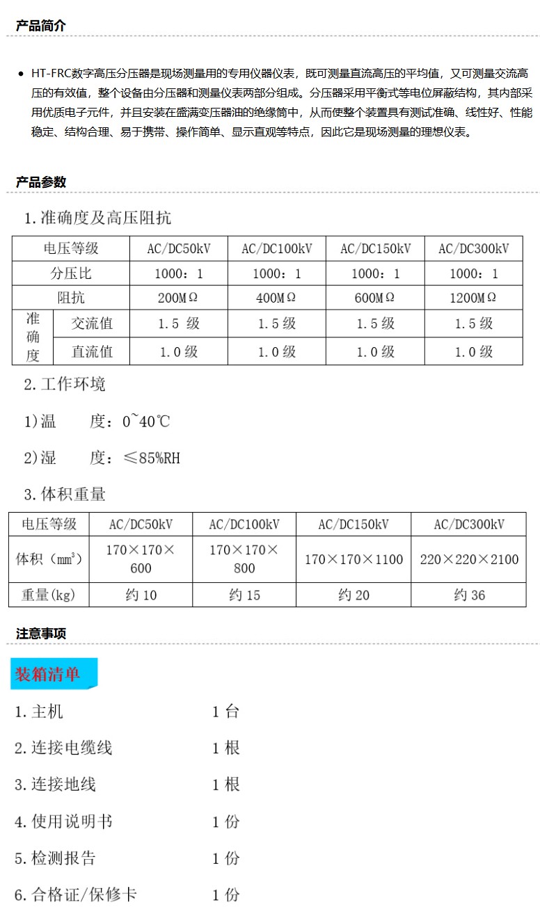 商品名称:华泰 直流交流高压分压器,HT-FRC-100kv