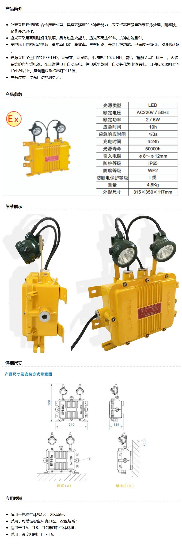 商品名称:倬屹 LED应急照明灯,2*3W,BZY8610A,单位:个