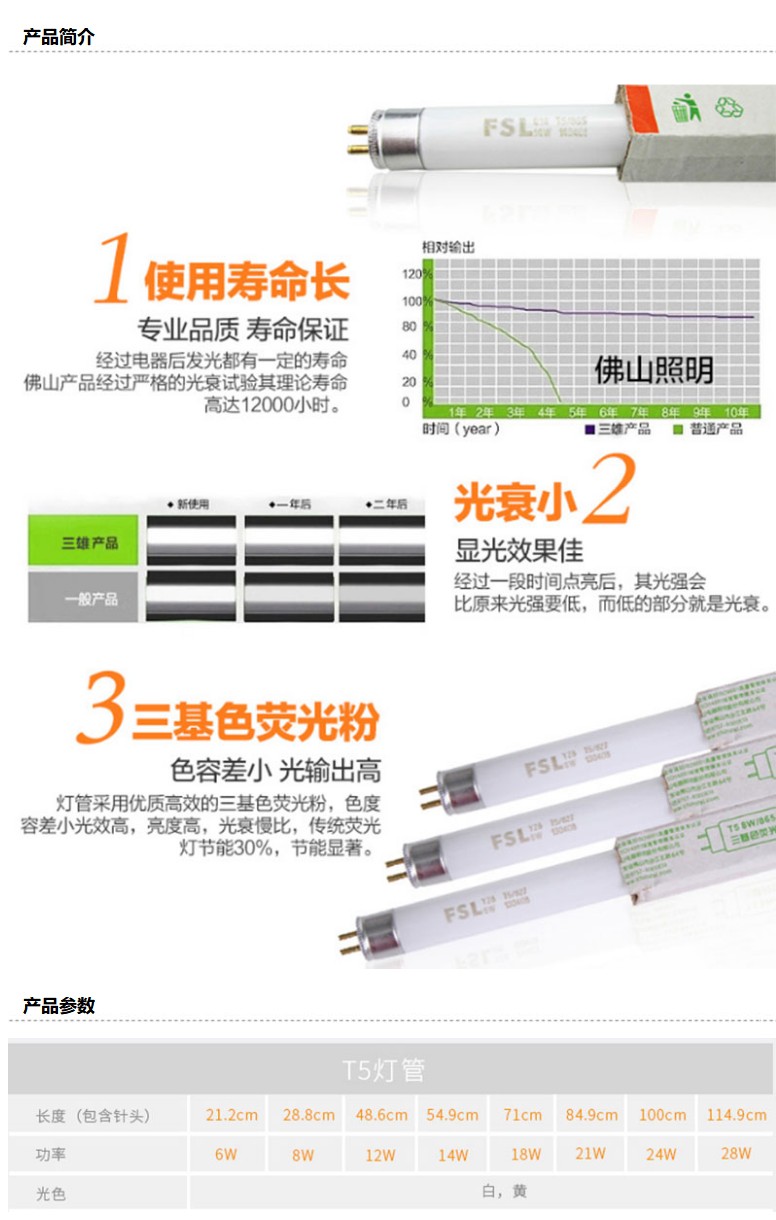 商品名称:佛山照明 T5荧光灯管 28W 白光 1.2米,整箱50个每箱,单位:箱