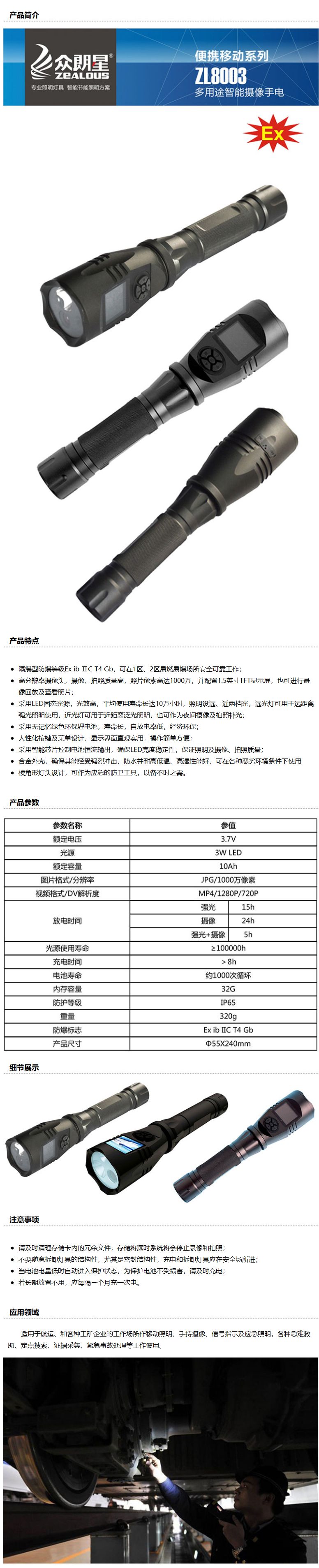 商品名称:众朗星 多用途智能摄像手电,3W,ZL8003,单位:个