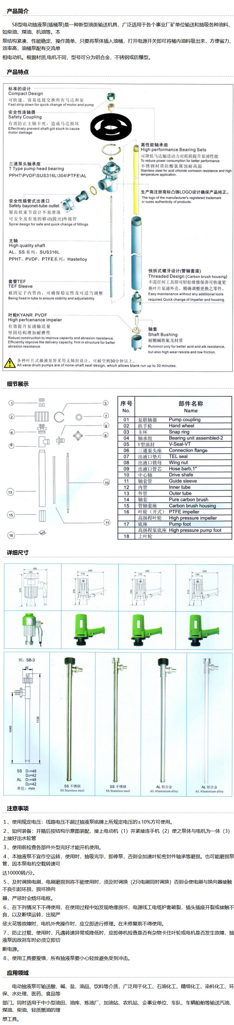 商品名称:标博/biaobo SB-3-G 不锈钢304电动插桶泵,BT4防爆电机