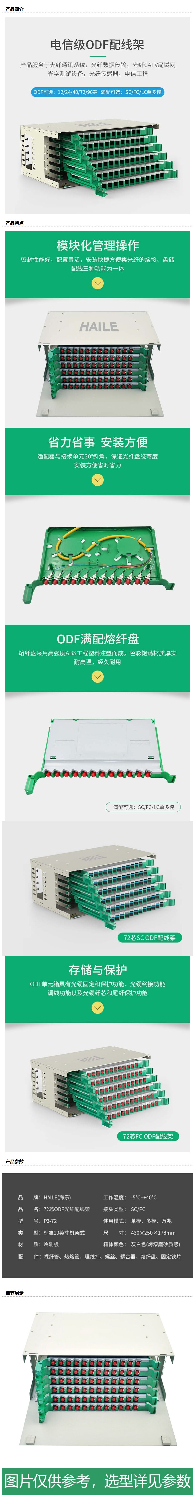 商品名称:海乐(Haile) 72口ODF光纤配线架FC多模千兆满配 19英寸抽拉机架式灰白色喷塑细砂面 P3-72M-FC