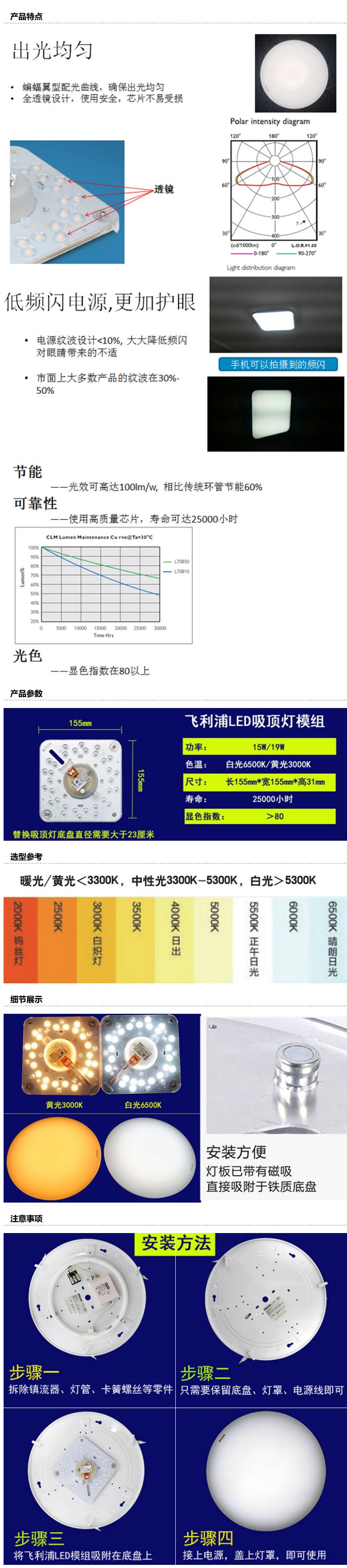 商品名称:飞利浦 LED吸顶灯改造灯板 Certaflux DLM ES1500/830磁铁吸附升级为14.8W黄光 替换32W环管,单位个