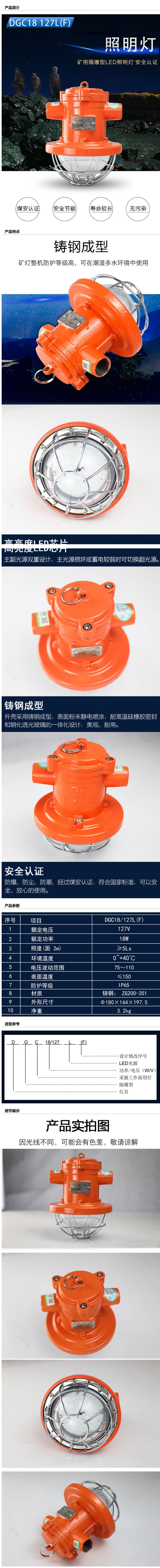 商品名称:正安 矿用隔爆型LED照明灯,DGC18/127L(F),单位:套